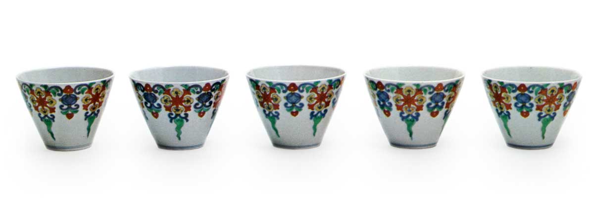 锅岛色绘环堵纹猪口 日本锅岛色绘环堵纹猪口 X Facebook Hatena Bookmark LINE Pinterest 复制 2025.10.06 锅岛色绘环堵纹猪口 锅岛色绘环堵纹猪口 锅岛色绘环堵纹猪口 高6.0厘米 口径8.2厘米 高台径3.7厘米此为略显小巧的猪口,饰环堵风格唐花纹。十件成套保存完好。