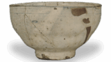形状是正确的kenkan形状,整体给人的印象是紧凑。特别是足环的制作非常精良。 足环经过浅而平的切割,形成环状图案,甚至没有一丝扭曲,这清楚地表明这是一件特别高品质的作品。粘土颗粒相对较细,烧制后呈深灰色,光泽暗淡。