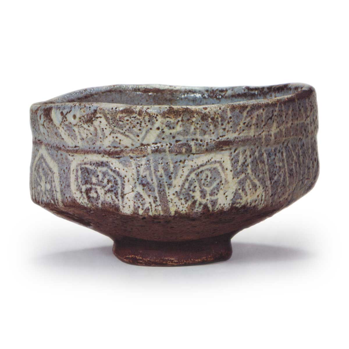 鼠志野是一种志野烧,在白粘土上涂一层由氧化铁制成的白色釉料,然后在釉料上雕刻图案,烧成白色。最后涂上一层白色长石釉。 白色Shino釉或深浅不一的色调透过鬼板化妆粘土呈现紫灰色,就像薄薄的白云下即将下雨时看到的深紫色山峦表面,这首诗非常详细地描述了Nezumi Shino的氛围。