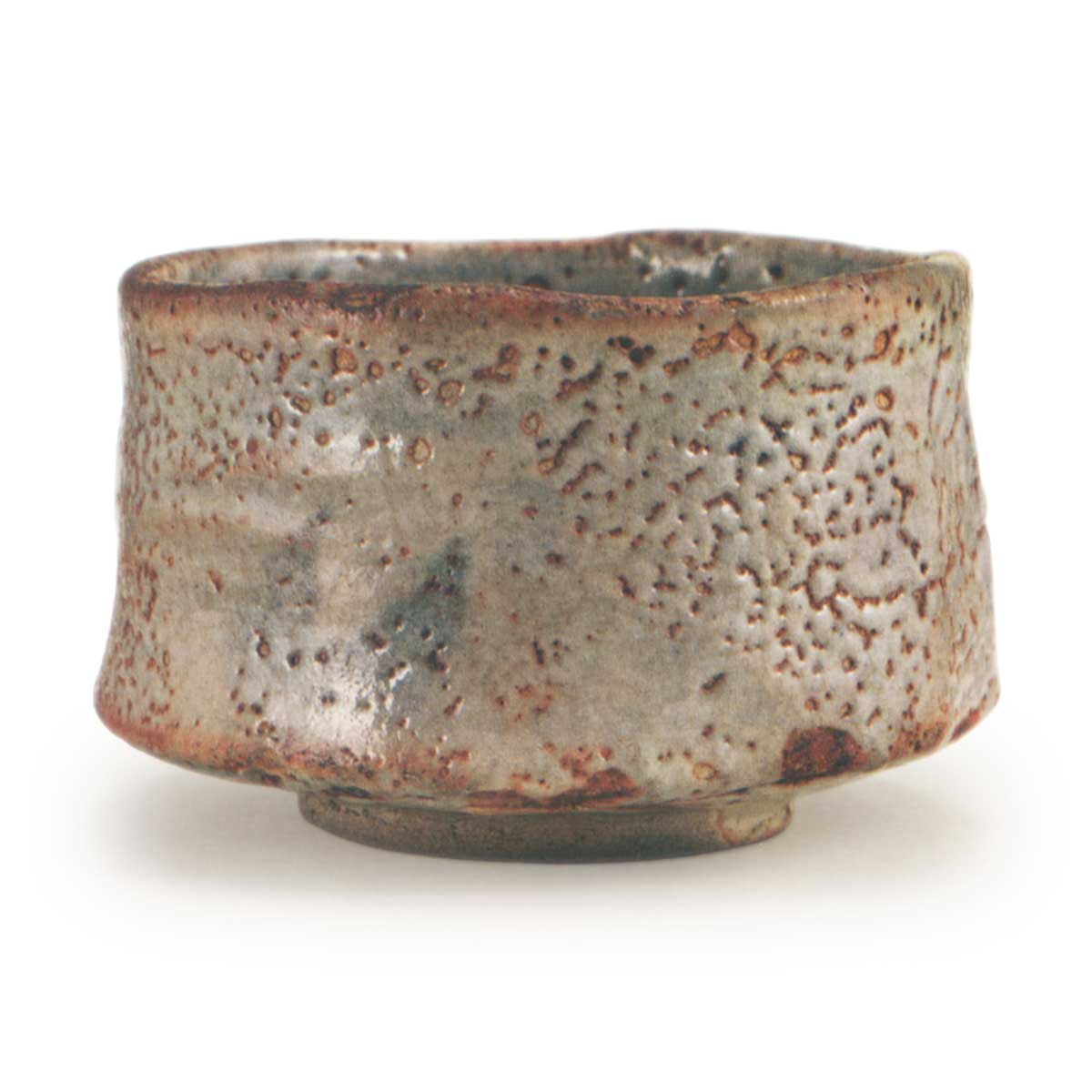 形状是腰部有三个凸起,碗身中央有类似竹节状的突起,而另一侧则呈锐利的斜边。这是一个坚固而壮观的茶碗,显然是为了大胆而壮观的制作。 捧着这只茶碗,你几乎可以想象到桃山时代武士喝茶的场景。虎纹碗、羽衣、旭影和旭枇都是同一个陶工制作的。