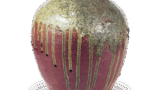 器身由粗糙的灰白色粘土制成,内外各有一半覆盖着深黑色釉,另一半和底部则覆盖着乳白色釉。外层的黑色釉被刮掉,露出难以辨认的抽象图案,既像一片大叶子,又像一朵花蕾,白色釉则涂在这上面。 器身涂有乳白色釉下彩的部分,釉下彩的底部有抽象的铁画图案,同样难以辨认。