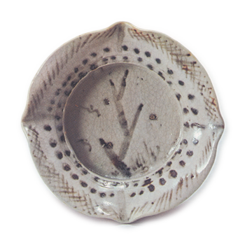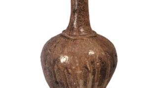 虽与「色绘藤花图茶壶」造型相似,但整体更为硕大,造型显得格外舒展。然而其轆轤拉坯技法略显粗犷。从壶口至壶身下部的白浊釉面也存在釉色不均现象,缺乏「色绘藤花图茶壶」那般光滑质感。此外,壶身环绕的吉野山图景虽以粗犷笔触自由舒展,但上彩技法显得相当粗放。