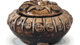 仁清色绘雉香炉 仁清仁清色绘雉香炉 2025.10.16 仁清色绘雉香炉 重要文化财产高22.2厘米 长径37.5厘米许多人将石川县立美术馆的彩绘雉香炉视为雄雉,而将此件视为雌雉。但从两者尺寸基本一致、此件呈现回首昂首的优雅姿态、以纯银色深浅变化表现羽毛等细节推测,它们很可能是在同一时期作为雌雄一对制作的。即便如此,仅在面部点缀赤金,其余羽毛全以银色赋彩的色彩处理仍堪称绝妙,与雄雉并置时的视觉效果亦显精心设计。这般洗练的色感正是仁清陶的重要特色,或许可归因于京都风土的熏陶。器背透出羽毛状的排烟孔,背部内侧局部及器身内部施釉,露胎处捺有“仁清”幕印。