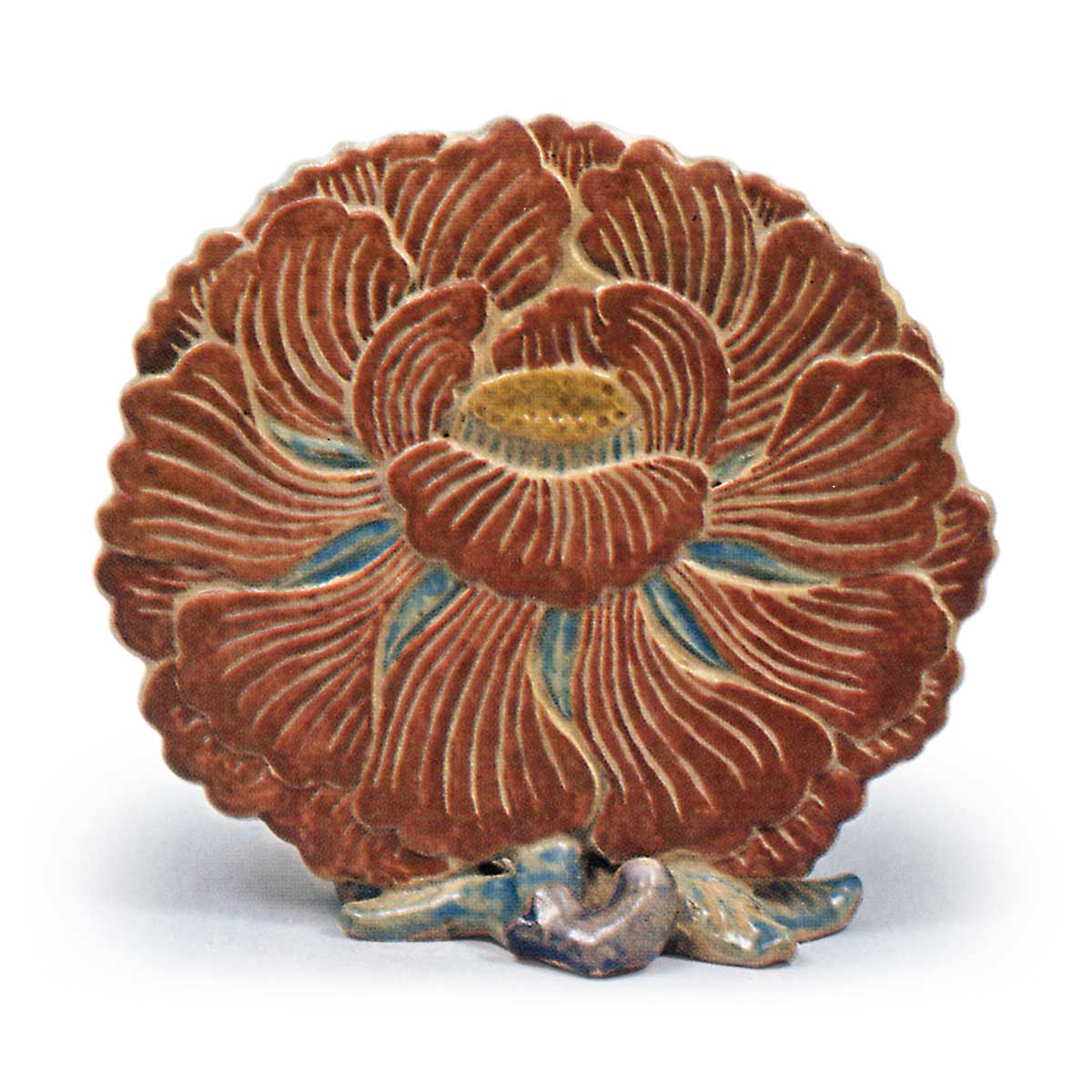 仁清彩绘牡丹砚屏 仁清仁清彩绘牡丹砚屏 X Facebook Hatena Bookmark LINE Pinterest 复制 2025.10.18 仁清彩绘牡丹砚屏 高12.0厘米 左右17.8厘米畠山纪念馆此硯屏与白釉牡丹硯屏同样描绘牡丹,但此件施以红、黄、青、紫、金等上彩。牡丹花浮雕以前者更为精湛,其底座虽饰两片叶形,背面却钤有仁清印章。迄今所见仁清硯屏仅此二件。