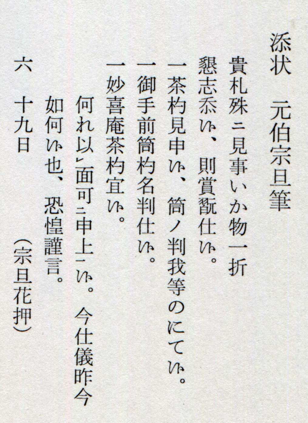 「妙喜庵茶杓 筒共 宗旦文添 丁丁轩(花押)」