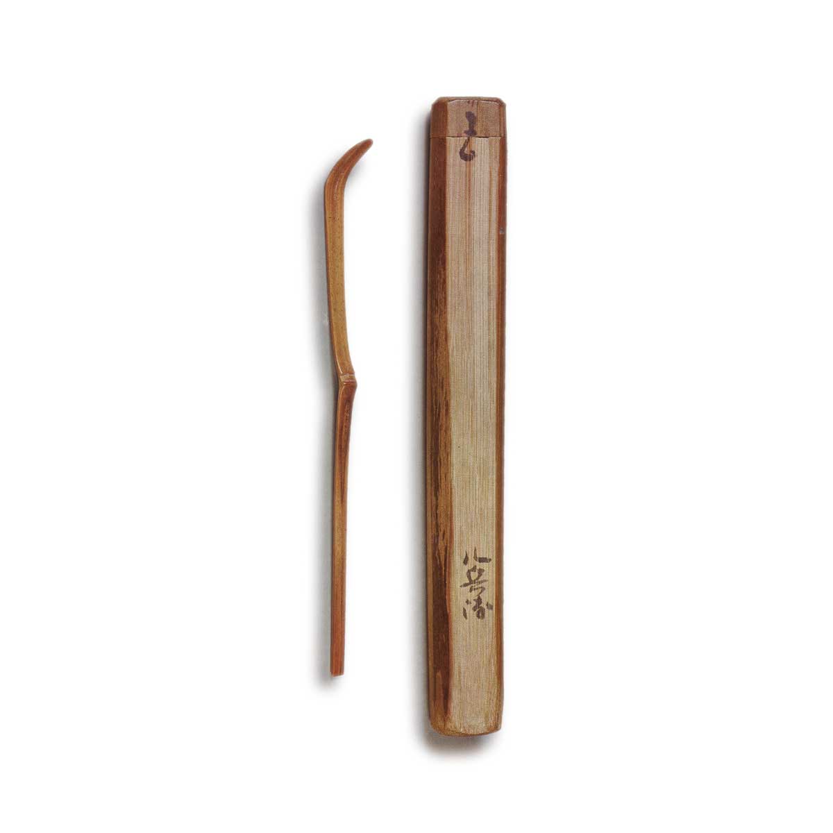 小堀远州 茶杓 共筒 铭八兵卫 日本小堀远州 茶杓 共筒 铭八兵卫 2025.11.12 小堀远州 茶杓 共筒 铭八兵卫 桐木白漆木盒附题记 小堀远州笔 茶杓节下留有竹节纹理,乃远州独特作风。 筒选用纹理鲜明的竹材,铭文与口印皆浑然天成。此乃赠予“八兵卫”之共筒,推测应为小堀家往来之人。 附属物箱 桐木 白木 题记 小堀远州笔 「成趣庵 家人八兵卫与之 宗甫作」 尺寸茶杓长约17.0厘米宽0.5―1.0厘米厚约0.2厘米筒长约21.0厘米直径2.5厘米 藏家东京 五岛美术馆 桐木白漆木盒附题记 小堀远州笔