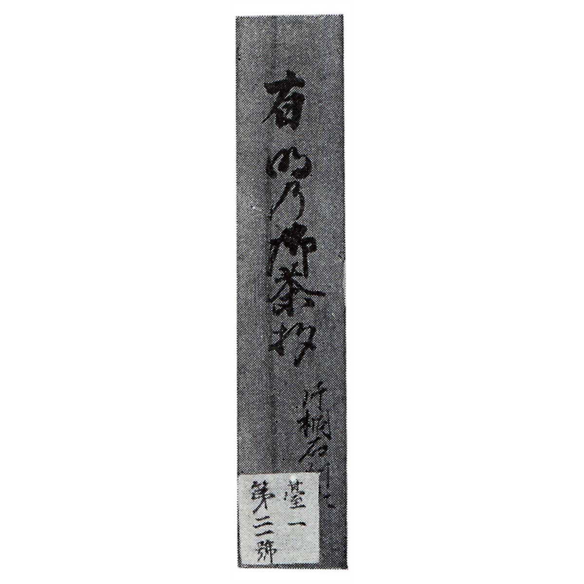 附纸包纸内有《有明御茶杓歌》二首,作者不详:「定家曙之茶杓 思念何人可吟咏 春晓余辉漫溢 有明之茶杓 世人不知此心意 任凭有明明月行于天际」