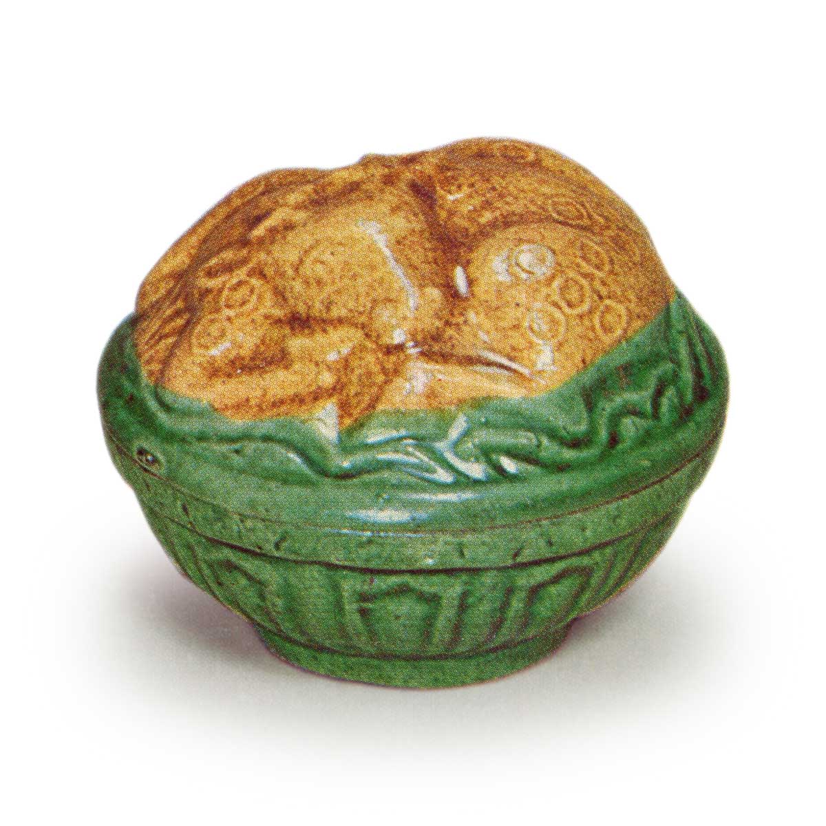 笔者没有机会见到更多相同形状的香盒,但也没有见过两个以上的香盒像这件香盒一样,有黄釉鹿身和蓝釉鹿身。即使算上紫鹿等其他类型,没有流传下来的可能最多也就十来件。