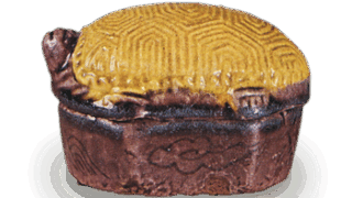 此香盒造型别致,手工精良,是茶艺师们争相收藏的对象。靛蓝葫芦画的图案是盖子正面的人物,有时图案会有所变化。周围装饰有伐木工人的图案,这些图案统一绘制在所有吴服爱香盒上。