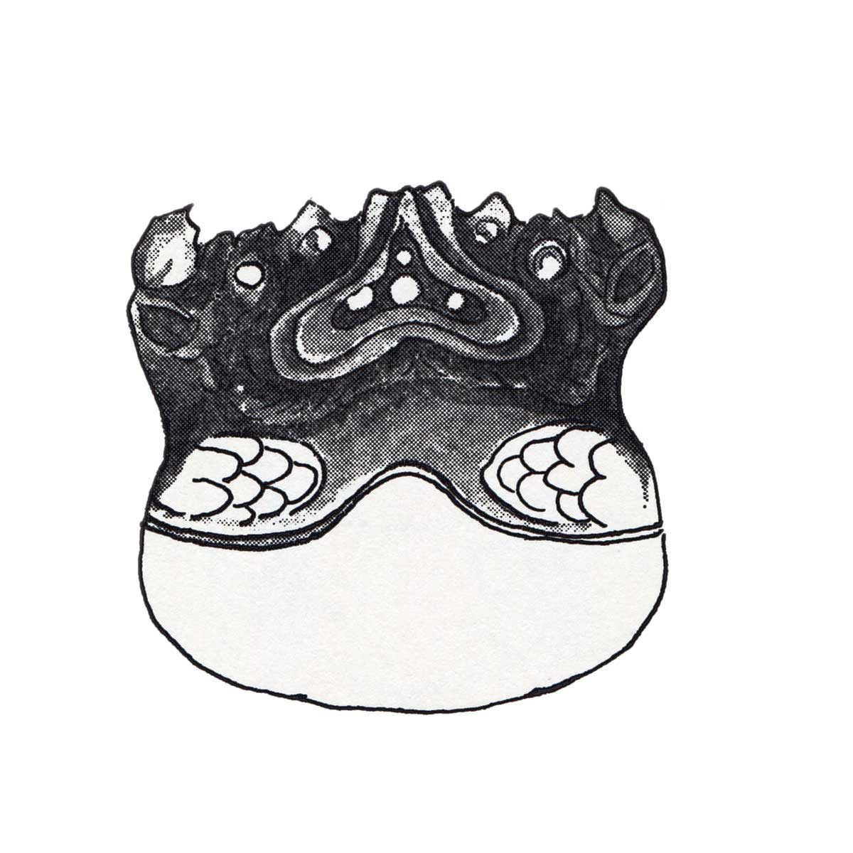 倚靠栏杆者即周茂叔,池面点缀的斑驳纹饰被称为荷叶。