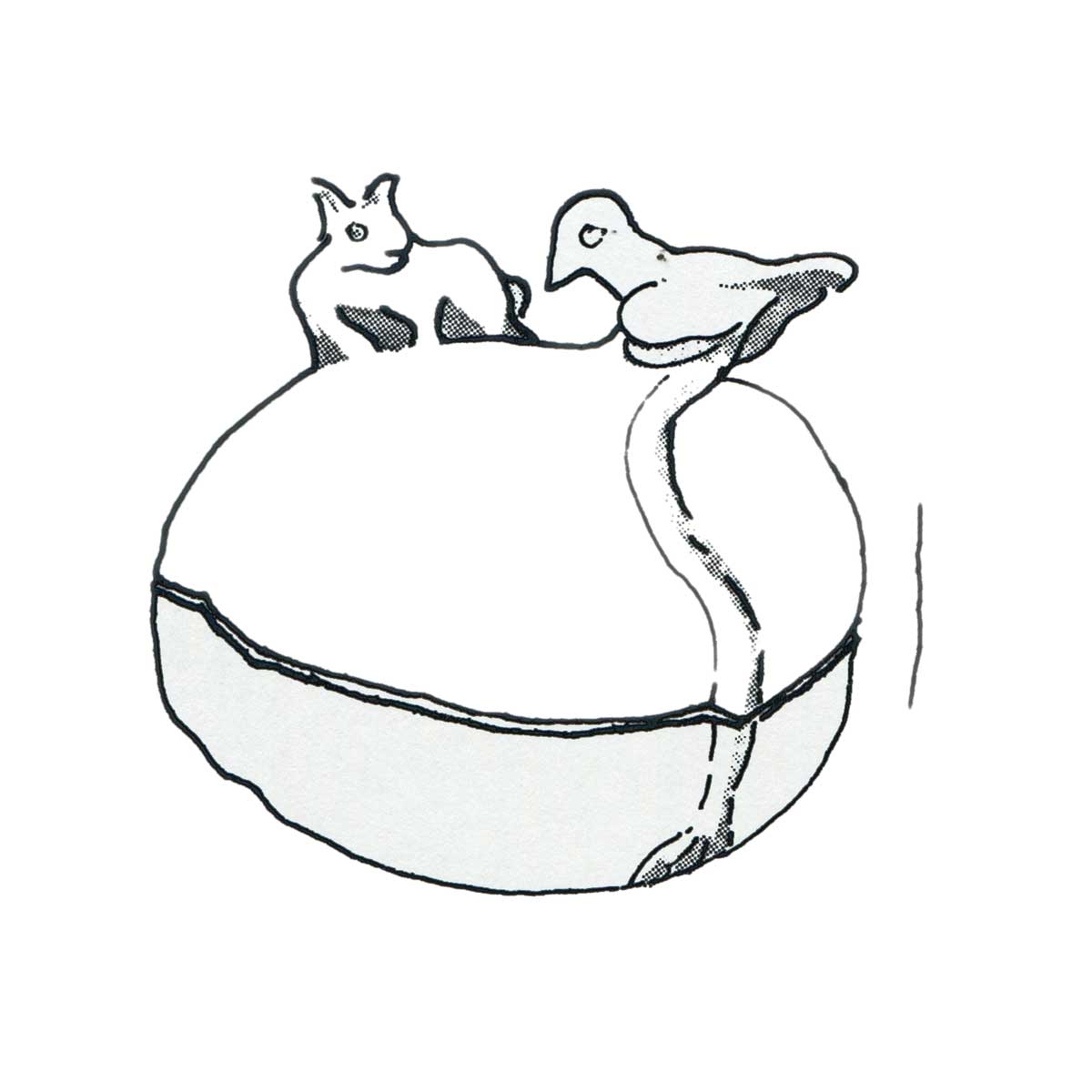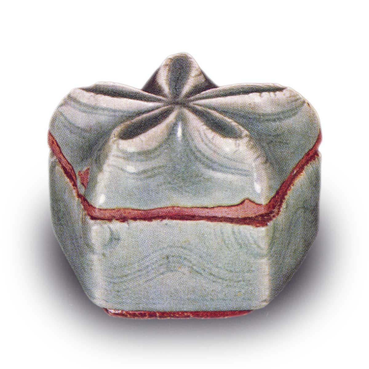 此香合虽名桔梗,其具体模仿何种花卉却难以断定。五瓣花瓣规整地勾勒出盖形轮廓,器身呈正五边形,并附有高足。