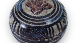 木米的陶器作品本属煎茶趣味,故抹茶气息较淡,其中香合尤为罕见。他尤擅仿制中国器物,偶有流传于世。此香合原产于加贺金泽,即九谷窑所制,却以独创的色彩与题材创作而成。