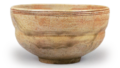此茶碗由不审庵传承,其匣盖内侧有了了斋题写「仁清茶碗 例岁正月用 不审庵」。然盖面另题「大井户茶碗 元禄元年辰九月」,故此匣非原装,似为后世空匣所藏,由了了斋补题。后世永乐保全曾仿制此茶碗,可见表千家将其作为正月茶碗年年使用,在同门中应是广为人知的名物茶碗。虽因黄釉色调等特征难以断定为仁清作品,但其器形与高台的跃动感与仁清风格极为相似,故了々斎应是将其认定为仁清之作。高台无印记。