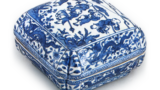 交趾写牡丹鸟纹急须 京都烧交趾写牡丹鸟纹急须 2026.03.14 交趾写牡丹鸟纹急须 高11.1厘米 口径6.5厘米 底径5.6厘米原装盒盖内侧写有“依元様制 交趾急须 粟田木米造”字样。这也是紫交趾急须中的佳作,壶盖正面饰有飞凤浮雕纹样,壶身绘有牡丹般的纹样,施以黄绿色的上彩釉,壶盖内侧盖有“木米”印章。器形紧凑,做工精良。
