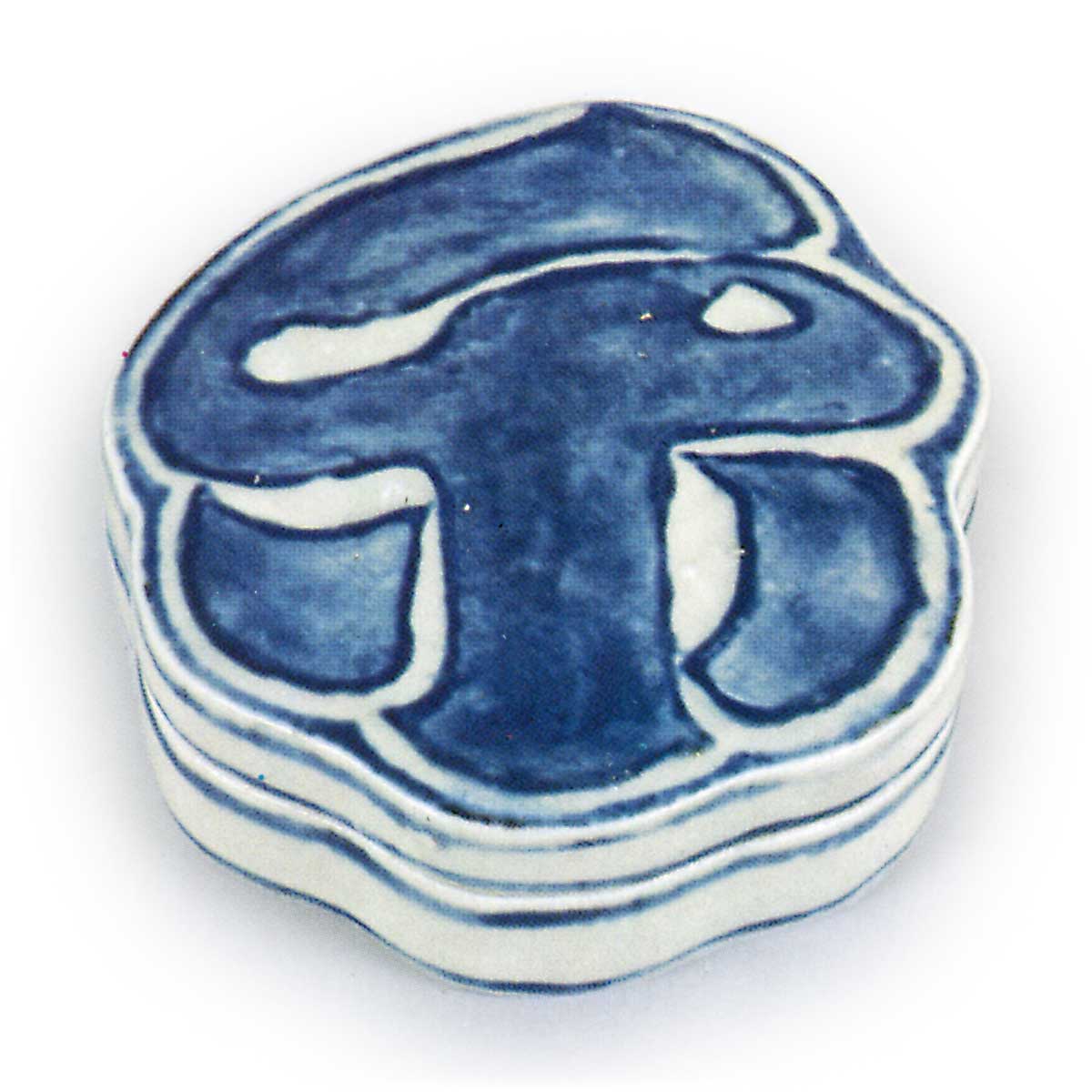 青花“乐”字香合 京都烧青花“乐”字香合 2026.03.16 青花“乐”字香合 高2.9厘米 口径7.0×6.5厘米 底径7.3×7.9厘米此作亦为仿古染付风格,盖面饰有草书体“乐”字,器形依字形轮廓而制。平底处刻有“癸亥初春墓白瓷青‘木米’”铭文,配套盒盖面则记有“粟田陶工聾木米造”字样。
