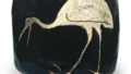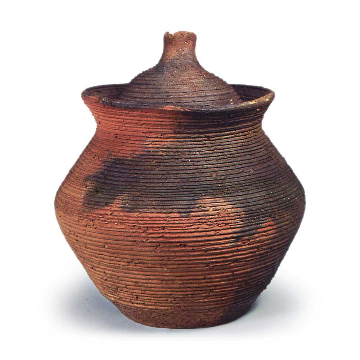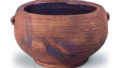 原装盒盖正面题有“南蛮切纹 水指 道八印”字样。此为附带原装盖的南蛮仿作,素釉表面呈现出红黑交织的焦灼纹理,景致优美。盖身均以丝目风格清晰刻出梳纹,平底右侧刻有“道八”铭文。