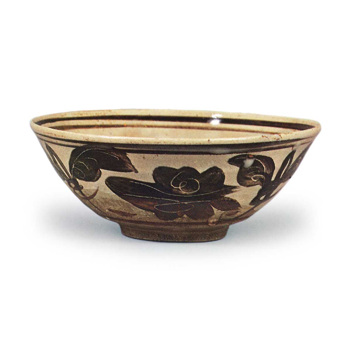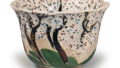 仿高丽彩绘碗 京都烧仿高丽彩绘碗 2026.03.27 仿高丽彩绘碗 高6.1厘米 口径14.7厘米 底径5.3厘米滴翠美术馆自古以来,中国磁州窑烧制的白釉黑花碗,在日本被称为“绘高丽”,但实际上并非产自朝鲜半岛,而是中国烧制的。此碗也很好地模仿了磁州窑的风格,在施白釉的素坯上以铁釉描绘牡丹纹样,并加以针描,其上再施透明釉烧制而成。内壁采用蛇目釉刮釉技法,其浅而平坦的造型也很好地再现了原型的形态。原装盒盖正面题有“绘高丽 茶器 道八”字样,并盖有仁阿弥印章。