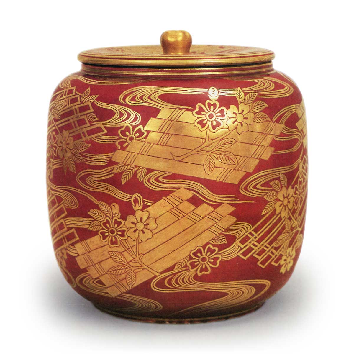 在红底上以金泥描绘优雅纹样的所谓金襴手红绘,也是保全的拿手好戏。以明代嘉靖年间为主烧制的古红绘金襴手是烧制金箔的,但保全的金襴手大多使用金泥。而且其设计呈现出和风化特征,这也是保全金襴手的特色。