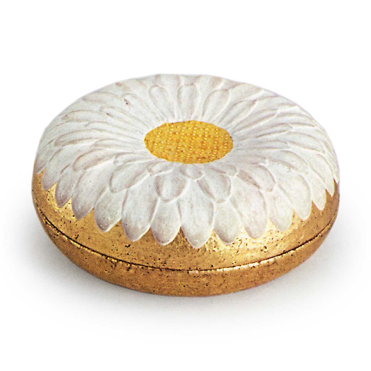 文政十年,保全随表千家吸江斋前往纪州,烧制了西滨御庭烧。据传,当时他获德川齐顺侯赐予“河滨支流”、“永乐”两枚印章,归京后应吸江斋之好,特制此香合以作纪念。此香合采用保全独有的设计,以烧金工艺在盖面镶嵌满面菊花,花蕊处施以黄色,底座呈围棋盒底般的所谓平圆形。盖内侧盖有“河滨支流”印章,高台内盖有“永乐”印章,盖内侧还由吸江斋以朱漆题写了“好(花押)”字样。盒子正面题有“吹上白菊御香合”,背面题有“丁亥冬 拝领之印ヲ以善五郎 ‘作之宗左’”,同样由吸江斋题写,盒底则题有“善五郎(花押)”。