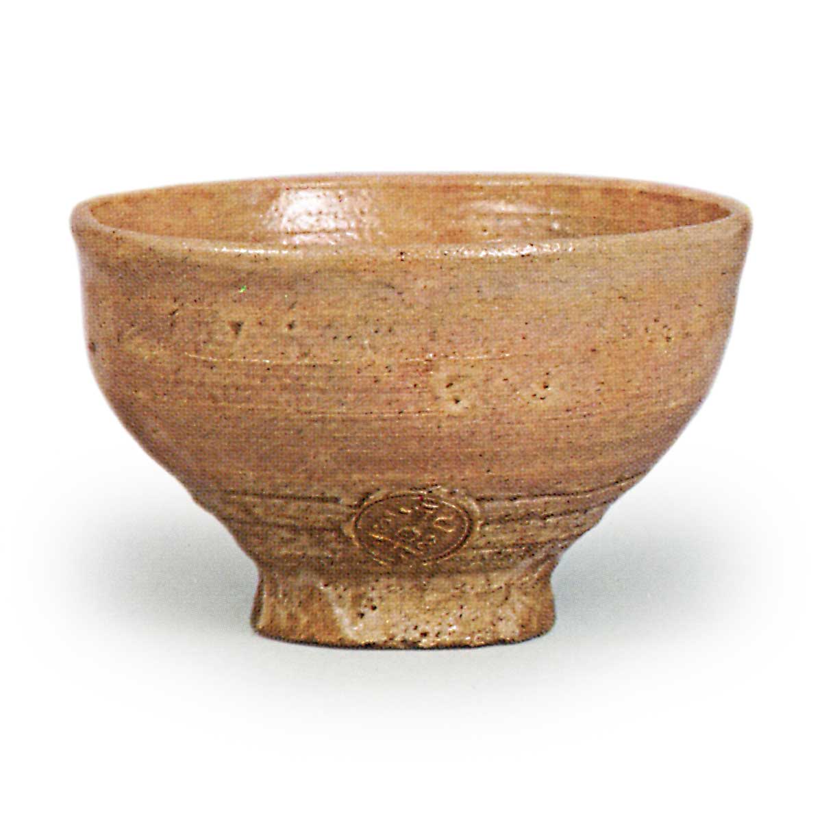 此盃仿照江户前期朝鲜半岛釜山窑烧制的所谓“御本茶碗”风格制作而成。呈吴器形,腰部较高,高台也削制得较为宽大。釉面呈现淡淡的红色,这亦很好地再现了原版的釉色。腰部压有“永乐”小印,原装盒盖正面题有“御本酒饮”,盖内侧题有“印 保全造”。