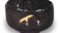 内盒盖内侧,江岑宗左以精湛的笔迹题写了“稲妻 左(花押)”。这恐怕是江岑的盒内题字中罕见的杰作吧。由于道入活跃于宗旦、江岑的时代,因此可以说这正是乐家当代作品由当代江岑题写内箱的典型乐茶碗。“稲妻”这一铭文,无疑源于黑釉中如光芒般显现的朱釉,而这种釉色在道入的作品中较为罕见。