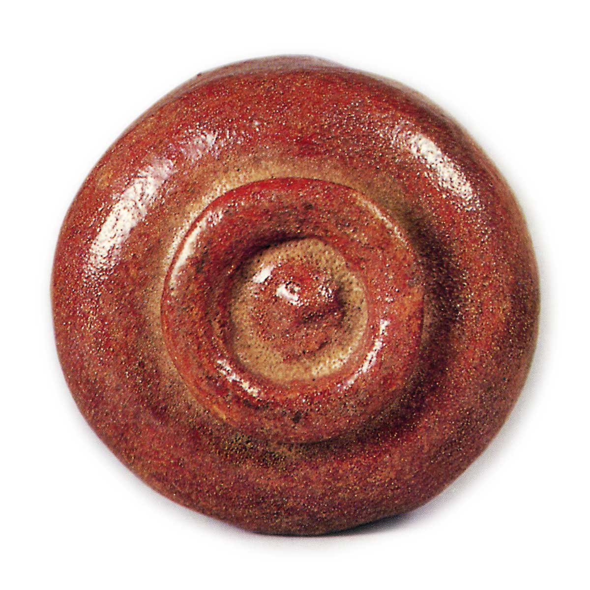 整体厚重、矮胖的造型,或许正是宗入自青年时期便已形成的特色。此茶碗亦被塑造成相当厚实的形态。属于底部膨出的筒形茶碗,口部如往常般向内收拢,口沿呈圆润的缓坡状起伏。内壁带有阶梯状凹槽,碗底深挖出茶水积聚的凹槽。外侧施以两道宽大的纵向纹路及一道横向纹路,口沿处也平直锐利地刻有纹路。高台硕大如香菇,高台内侧被削成圆形,兜巾状的边缘清晰挺立。
