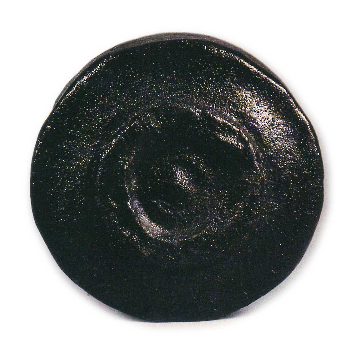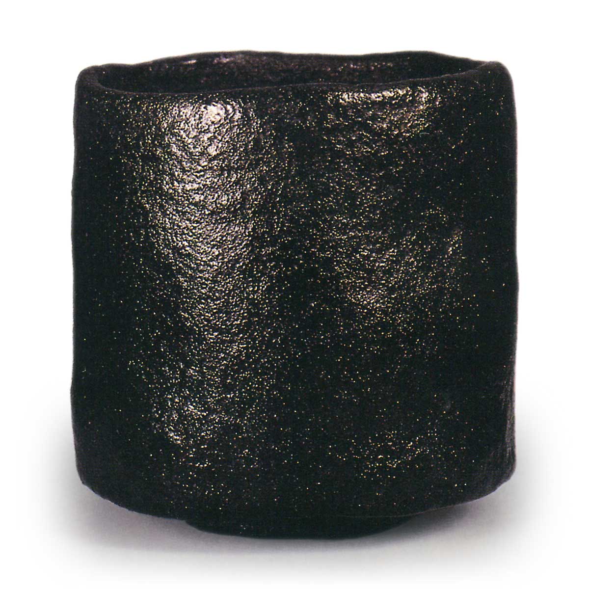 其制作风格颇具濑户黑筒茶碗的韵味,亦与光悦茶碗颇为神似。器身呈筒形,腰部棱角分明,口部略微收窄。宽大的高台较低,台面宽阔,高台内侧的镂空呈不规则圆形,并饰有低矮的涡状兜巾。内壁设有茶洼,并环绕着阶梯状纹路。通体施釉,表面覆盖着一层略带釉色光泽的黑色釉料。或许是因为底部厚实,手感沉重,高台底座上留有三处釉痕。