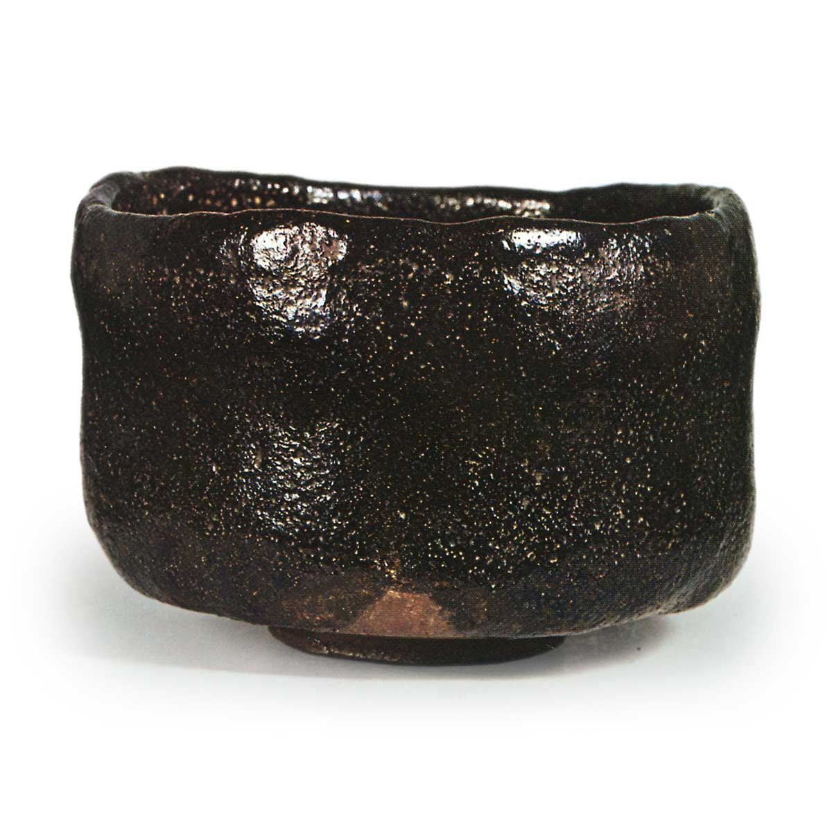 高台内壁被削成圆形,留有涡状的兜巾纹;从高台延伸至腰部的三角形露土部分亦仿效志野风格。据传混入了备前土的富含铁质陶土烧制得十分坚硬。黑釉熔融均匀但厚度适中,一入特有的朱釉则完全未见踪影。