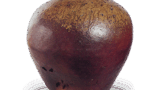肩部有三个尖头钥匙状把手。它由一种略带沙质的粘土制成,耐火性高,表面有精细的轮制痕迹。 烧制不是很硬,肩部有淡淡的天然釉,但尚未完全熔化。像这样的三耳小壶非常罕见,例子也不多。然而,它是一件值得注意的作品,是北陆地区古老的附耳壶之一,具有独特的壶耳特征。它制作于8世纪下半叶。