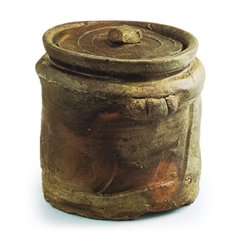 北陆地区的双耳瓶以长颈瓶为基础,但双耳非常独特,呈挖空状,上下两端被磨平。从10世纪开始,双耳逐渐变长,并添加了各种挖空装饰,极具装饰效果。这是为数不多的完整的越前双耳瓶之一,由质地致密的粘土制成,烧制效果极佳,肩部和下半部分覆盖着天然的黄褐色釉。