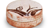 須恵器 台付盌 日本須恵器 台付盌 2024.12.10 須恵器 台付盌 爱知县一宫市浅井町浅井神社古墓出土7世纪高10.3厘米,直径12.7厘米,底座直径9.9厘米一宫市教育委员会这是一种传统的直立盘子,盘身较浅,直径大于高度。底座较低,底部较宽且开口,这是7世纪初的特征。器皿表面在陶轮上经过精细加工,由于碳化而呈现黑色。它是在底座朝上的情况下烧制的。