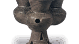 須恵器 三足壺 日本須恵器 三足壺 2024.12.11 須恵器 三足壺 出土于福冈县须惠町高崎第2号古墓6世纪总高:24.6厘米(盖)高:9.3厘米,直径:9.8厘米(器身)高:18.9厘米,直径:6.5厘米,器身直径:14.9厘米九州历史博物馆三足壶有两种类型:一种为平底盖,另一种为深盖,如本器。两种类型器身的形状相同。 盖子呈钟形,带有圆形把手和底座,与盖子相配。器身仅在肩部有一排刻纹装饰,而三足则经过雕刻,由于向内弯曲,略显单薄。烧制效果良好,器身和盖子上都覆盖着一层黄白色的天然釉。