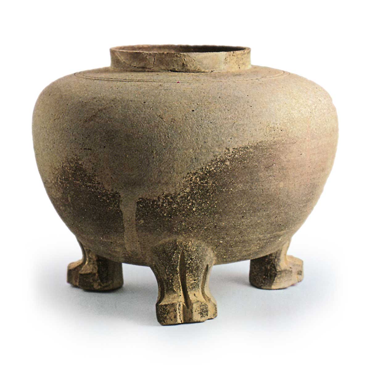 須恵器 三足壺 日本須恵器 三足壺 2024.12.11 須恵器 三足壺 三重县松阪市出土8世纪高19.3厘米,直径11.1厘米,瓶身直径24.6厘米像这种带有动物腿形把手的短颈罐在8至9世纪时在全国各地的窑炉中都有生产。这种罐的原始形式是唐代的三彩釉罐,带有动物腿形把手,而东窑也生产过类似外弯颈的罐子。这件罐子被挖掘出来时是作为陪葬品,宽厚的肩部与分开的动物腿形把手相得益彰,给人留下深刻印象。根据烧制工艺,人们认为罐子的陶土来自猿投窑。