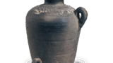 須恵器 壺 日本須恵器 壺 2024.12.11 須恵器 壺 爱知县日进市岩崎41号窑出土7世纪高17.1厘米,直径9.5厘米,底径8.7厘米名古屋大学考古研究实验室肩部有棱,瓶身与底部形成一条直线,因此已经呈现出新的特征,但结合其他配套的器皿来看,可以确定其年代为7世纪末。它由白色高耐火度粘土制成,经过高温烧制,肩部覆盖着深绿色的天然釉。瓶身一侧有两个垂直的黑色长斑,使这只罐子看起来与众不同。