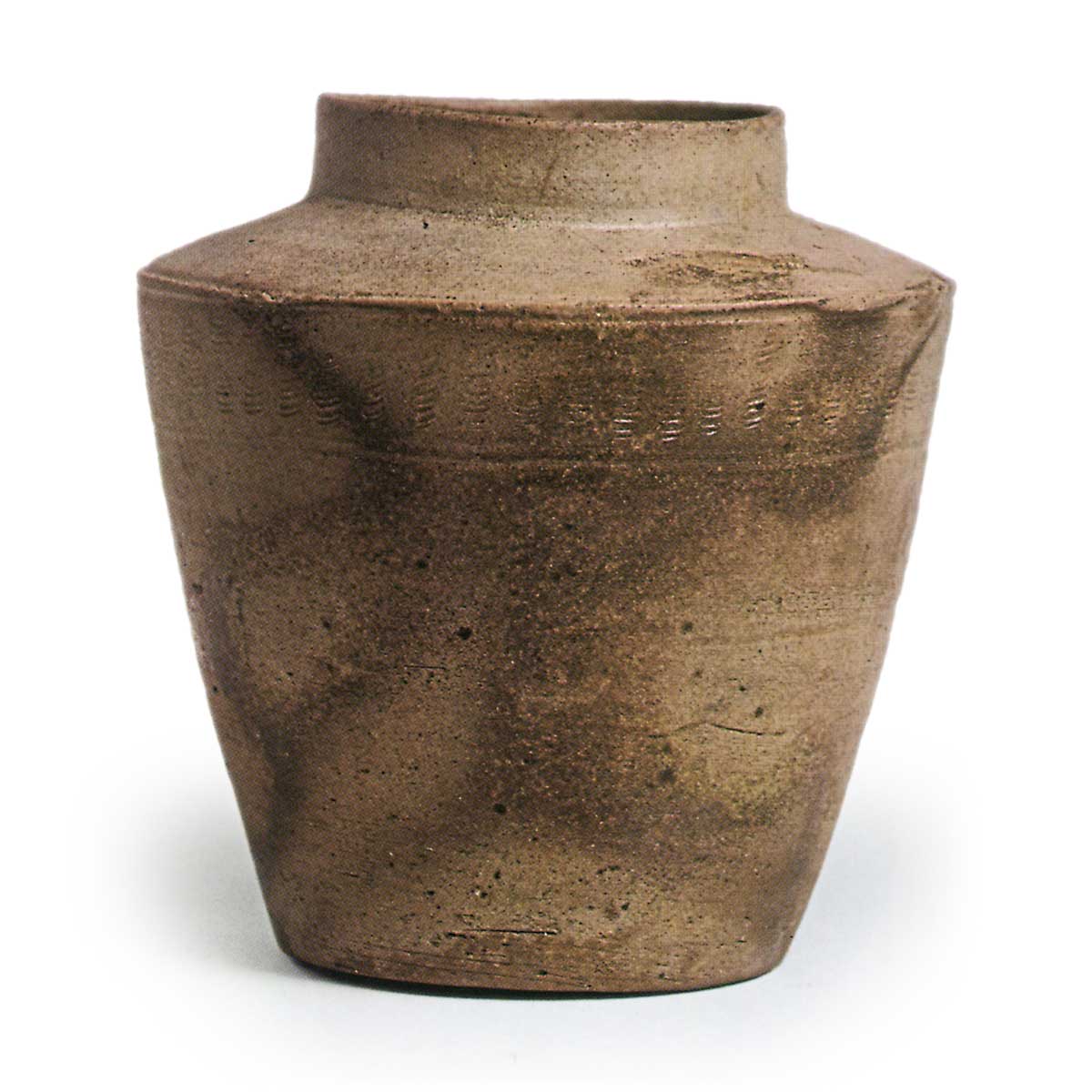 須恵器 壺 日本須恵器 壺 2024.12.11 須恵器 壺 8世纪高17.3厘米,直径9.4厘米,瓶身直径16.7厘米,底部直径10.4厘米肩部有凸起,上下都有凹陷。在凹陷处下方还有一条凹线,两条线之间有类似梳子的工具刻出的图案。器身不紧绷,高度与器身直径相比较低,底部直径较大,因此被认为是8世纪下半叶的作品。烧制工艺精良,器身一半有黑褐色的不均匀烧制痕迹。这是一件薄而精致的作品。