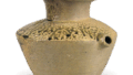 須恵器 台付𤭯 日本須恵器 台付𤭯 2024.12.11 須恵器 台付𤭯 6世纪高31.0厘米,口部直径15.0厘米,器身直径14.2厘米,底部直径12.6厘米奈良县立考古博物馆这是一只不寻常的罐子,带有两层镂空底座。它可能用于陪葬,仿照带支架的长颈罐子制作而成。从颈部和罐身的形状、设计和支架的形状来看,它被认为是在6世纪末左右制作的。烧制温度不高。表面呈灰色,质地与无釉陶器相似。