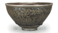 该器皿的形状是正确的,坚硬且略带粗糙的粘土中含有大量铁,这也是Tenmoku的特征。内外侧的厚黑色釉几乎在外侧腰部被切断。 釉在边缘处变薄,并呈现出淡红色。随着釉在底部变厚,它也呈现出蓝色,并在釉破裂处形成大块积液。