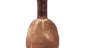 須恵器 横瓶 日本須恵器 横瓶 2024.12.11 須恵器 横瓶 爱知县一宫市浅井13号古墓出土7世纪高21.4厘米,直径7.8厘米,瓶身直径13.7厘米 x 16.0厘米一宫市教育委员会瓶身细长,形似横瓶,瓶颈纤细,但瓶口没有凸缘或台阶,属于窄口瓶和横瓶的混合类型。它有一个环形把手,这也是不寻常的,它可能专门用于葬礼。器身致密,含有大量铁元素,烧制得非常完美,厚实的棕绿色天然釉覆盖了器皿的一半,一直延伸到底部。