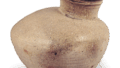 須恵器 平瓶 日本須恵器 平瓶 2024.12.12 須恵器 平瓶 岐阜县安八郡出土7世纪高15.9厘米,口部7.2厘米,器身17.4厘米岐阜大学历史研究室器身较为扁平,但顶部隆起强烈,边缘和双层边缘的形状也表明它是在7世纪初才制成的。它采用人杵臼法制作,下半部分通过刮削进行调整。粘土略带沙质,烧制效果极佳,顶部有一层厚厚的深绿色天然釉。美浓地区有许多用这种粘土制成的作品,因此人们认为它是在美浓制作的。