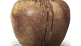 須恵器 大甕 日本須恵器 大甕 2024.12.14 須恵器 大甕 出土于宫城县8世纪高76.0厘米,直径51.0厘米,瓶身直径73.0厘米东北大学考古实验室这是一只保存完好的大罐子。 瓶身呈圆形,肩部隆起,表面使用带有凹槽的工具打磨光滑。瓶颈向外弯曲,底部有双线锯齿状图案。通常情况下,这个时期的大罐子都有梳状波浪纹设计,但这个罐子也展现了东北地区的地域特色。烧制工艺精良,棕红色的瓶身覆盖着淡黄色的天然釉。