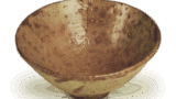 此碗为南宋时期福建建窑所制,碗沿向外弯曲,整个内外表面可见美丽的大油滴。 据说建窑遗址上遍布着不计其数的天目碎片,其中大部分是茶碗碎片。除了茶碗,这里只发现了两种其他类型的碎片:与这个碗大小相同的碗碎片,以及直径约10厘米的小碗碎片。
