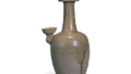 从瓶颈到瓶身下半部分都涂有厚厚的灰釉。