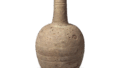 最古老的砚台是用陶器制成的,基本上有两种类型:圆面砚台和方面砚台。正如我们已经提到的正仓院方砚的情况,圆面砚台在奈良时代使用,而方砚在平安时代使用。在这两个时期之间的过渡时期,像本文中的砚台一样,这种表面平坦的宝珠形砚台主要产自猿投窑。 它由厚实的粘土板制成,形状非常优雅。头部形状与海陆边界弧线相呼应,堪称妙笔生花。