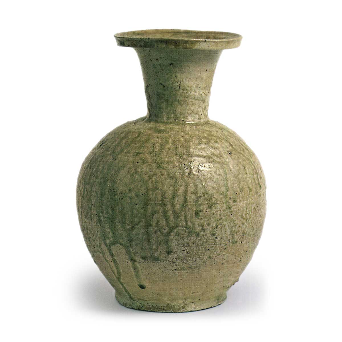 灰釉长颈瓶 日本灰釉长颈瓶 X Facebook Hatena Bookmark LINE Pinterest 复制 2025.01.23 灰釉长颈瓶 爱知县猿投窑出土10世纪高29.5厘米,口直径13.5厘米,身直径20.8厘米,底直径12.1厘米武藏野美术大学10世纪,位于猿投窑东部的黑笹地区的灰釉陶窑开始占据主导地位。这是因为该地区盛产优质白土,耐火度高。这件器物可能产自黑笹地区。从宽大的口沿、圆肩和缓斜的肩部以及退化的圈足形状来看,这件器物可追溯至10世纪上半叶。它是灰釉长颈瓶的典范之一。