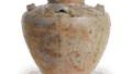灰釉带手柄的水瓶 日本灰釉带手柄的水瓶 X Facebook Hatena Bookmark LINE Pinterest 复制 2025.01.24 灰釉带手柄的水瓶 出土于爱知县濑户市山口广久手地区的F谷窑11世纪高度(当前)26.6厘米,口部直径10.7厘米,身体直径14.9厘米濑户市历史民俗博物馆这是平安时代晚期常见的青瓷和灰瓷水壶,壶肩通常有一个壶嘴。壶口上部呈喇叭形,宽大,壶把是一条直径2厘米的粗陶绳,这种壶形在灰瓷的最后阶段和三彩早期窑中出现过。壶身由高烧灰白色粘土制成,并涂有刷涂灰釉。壶底环缺失,已被替换为另一件。
