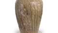 这种瓶代表了小濑户烧的早期阶段。瓶口与瓶身相比较小,内部的绿色带与早期类型相同。肩部较宽,腰部较窄且逐渐变细,形状为所谓的“类型”,即底部略微张开。 器底有1.3厘米的斜面,但底板的厚度为2.0厘米,两者之间没有关系。肩部的装饰有两排四条梳状线,这也是早期古濑户陶器的装饰手法之一。器身由优质灰色粘土制成,在2.0厘米厚的底板上盘绕成绳状。 口部是模制的。釉料接近纯灰,不稳定,呈现出条纹状釉面,这是早期Koseto陶器从肩部到胸部的典型特征。烧制效果极佳。与上述的梅瓶一样,这种造型起源于镰仓时代,受到中国陶瓷的影响,但有些人认为它可能也受到了高丽青瓷的影响。