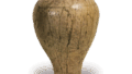 这件器物显然是仿宋朝的梅花瓶,其形状与著名的修武窑白釉黑花梅花瓶几乎完全相同。它由高烧粘土制成,通过将粘土卷起并塑形,呈现出优雅的形状。 边缘和颈部连接成台阶状的设计非常巧妙,装饰方式也令人赏心悦目。烧制效果极佳,虽然器身是素灰色,但还原烧制产生的鲜亮浅绿色与流动的釉面相结合,使这件作品更加引人注目。这是早期瓷器中为数不多的杰出作品之一。
