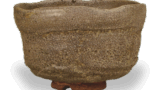 当利休看到松井贞盛展示的茶碗时,他说:“这是一个黄色的天目。”但人们认为,这个茶碗的风格实际上是灰被天目。这个茶碗与纪州冰川家的茶碗在碗和釉料方面都非常相似,与尾张德川家的茶碗不同,后者是一个黄色的天目。 大洲家族的黄色天目釉面呈黄褐色,与“黄色天目”之名十分契合,但我认为将这种“沼田”描述为灰陶更为恰当。将藤田家族的黄色天目与德川大洲家族的黄色天目进行比较,可以发现它们在风格上也有所不同,将德川大洲家族的灰陶与纪州德川家族的灰陶进行比较时, 在制作方法上也有很大不同,人们认为备州灰瓷是在建窑生产的,而纪州灰瓷则很难归因于建窑。