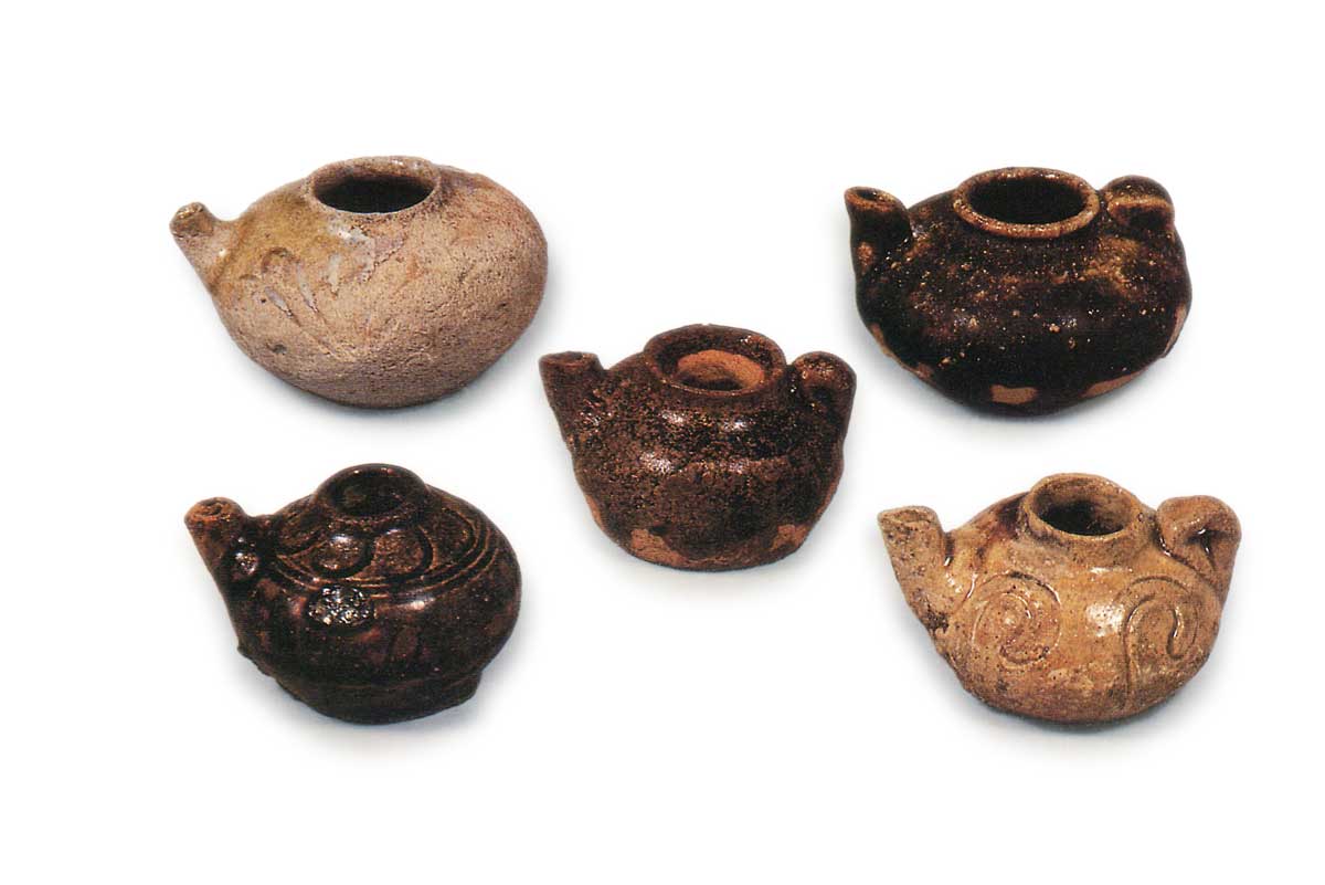 其中许多在壶嘴的对面有一个手柄,手柄有多种形状。铁釉和灰釉都得到了使用,不同的成分和烧制工艺产生了各种不同的色调。