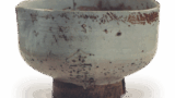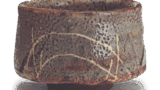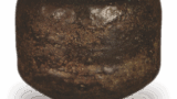 从形状和釉料的使用方式来看,它看起来像是建康烧,但实际上并非来自建窑。 图中看起来较深的陶土并非像建窑的陶土那样原本就是黑色的,而是经过多年使用而变深的。仔细观察,你会发现这是一种上等的瓷土,据推测原本是灰白色的。碗底圈和碗底圈周围的刮痕与建窑的完全相同,很容易让人误以为是建窑的。 它可能来自浙江或福建省的窑厂,那里的人用与kenkan相同的方法制作天目。它可能听起来像是一件质朴的器物,但这个茶碗却是一件珍宝,虽然尺寸不大,但表面光洁、轮廓分明。